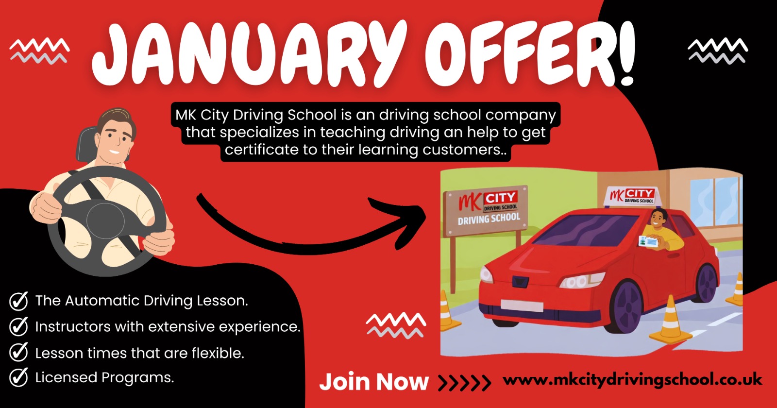 OUR SERVICESWhether you're getting behind the wheel for the first time or have already had some lessons, MK City Driving School is here to help you cross the finish line and pass your driving test successfully.